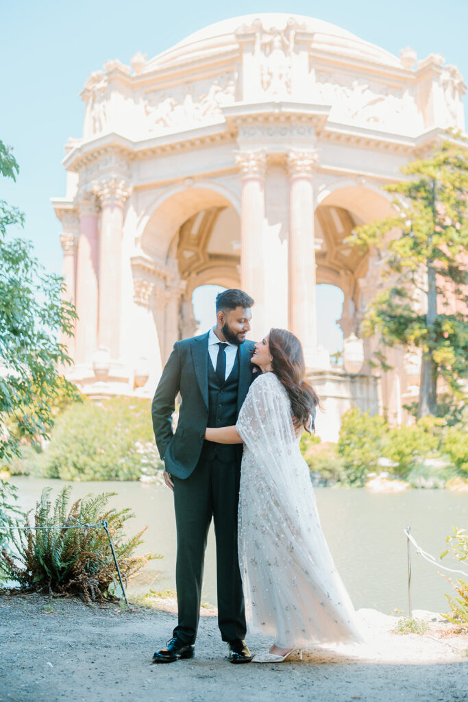 The May light at the Palace of Fine Arts creates a dramatic yet romantic look — open skies, glowing skin tones, and cinematic scenery. The images felt straight out of a Disney movie, filled with warmth, movement, and love.
