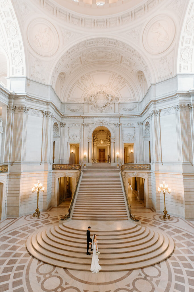 The 4th floor of San Francisco City Hall is one of the most suitable locations for couples planning a wedding with an extended guest list. With its expansive layout, elevated vantage points, and refined interiors, it provides enough space for guests to gather comfortably while maintaining an intimate ceremony atmosphere.